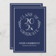 Envoyer les annonces classiques de graduation avec un blanc chic sur l'emblème de typographie bleu marine qui dit : CLASSE DE [ANNÉE] DIPLÔMÉE avec les mots courbant autour de l'année au milieu avec des feuilles botaniques incurvés de chaque côté de la conception circulaire. Sous l'emblème se trouve le nom et l'école du diplômé dans une police serif blanche et épurée. Un rectangle blanc fin crée une bordure près du bord. Customisez l'année, le nom et l'école dans la barre latérale. Personnalisez-le pour n'importe quel type de diplômé : lycée, collège, collège, faculté de droit, école de médecine ou école de commerce. L'arrière est marine avec une fine bordure rectangle blanche près du bord. Pour voir la conception sur d'autres éléments, cliquez sur le lien de collection "Rocklawn Arts". Copyright ©Claire E. Skinner. Tous droits réservés.