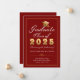 Faire-part Classe élégante Red Gold Script de 2025 Graduate