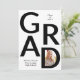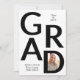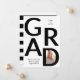 Classe GRAD moderne en noir et blanc de 2025 avec graduation photo faire-part. Il comporte le texte "GRAD", une photo dans la lettre D et rayures en noir et blanc sur le dos.