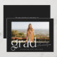 Cette faire-part de graduation simple, moderne et tendance comprend une palette de couleurs noir et blanc et une grande photo de votre diplômé. Un " Grad " audacieux et élégant orne l'avant. Le dos de la carte est simple et vous permet d'en savoir plus sur votre diplômé et son plan pour l'avenir. Ou, vous pouvez le changer en une invitation à une fête de remise de diplômes. Vous pouvez trouver d'autres versions de ce design dans mon magasin Zazzle.
