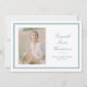 Annoncez votre diplômé avec cette faire-part de graduation simple et élégante. Ajoutez votre photo préférée à l'avant et votre propre message personnel à l'arrière.