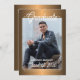 Félicitations unique et tendance faire-part diplômée et la carte d'invitation de fête de célébration, avec un classique faux brillant laiton cuivre or dégradé couleur or arrière - plan. Avec la possibilité de customiser ou de personnaliser avec une photo, le nom du diplômé, l'année de graduation de la classe, le lycée, le futur nom du collège ou de l'université, et l'information de fête de fête. Faites savoir à la famille, aux amis et aux voisins qu'il y a un heureux diplômé prêt à conquérir le monde, et invitation tout le monde à venir célébrer l'heureux événement avec vous !