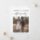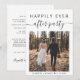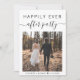 Faire-part de mariage minimaliste moderne pour une fugue ou une petite annonce de mariage et invitation à la réception. Le recto présente votre photo du jour du mariage et "Happily Ever After Party" dans un mélange de typographie simple et d'écriture tendance avec des fioritures. Sous votre photo, ajoutez vos prénoms et la date de votre mariage. Au verso, personnalisez votre annonce de mariage et votre invitation à la réception avec plus de détails, entrez l'adresse de votre site web de mariage pour créer un code QR que les invités pourront scanner pour voir vos photos de mariage, tous les détails et répondre en ligne, et ajoutez vos noms dans une écriture semblable à une signature.