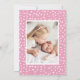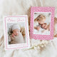 Fêtez l’arrivée de votre petite fille avec cette carte de faire-part de naissance photo rose personnalisable. Avec sa photo de nouveau-né encadrée par une douce bordure cardiaque dessinée à la main, ce design moderne met en valeur son nom dans une police de caractères charmante. Les tons doux rose et blanc apportent une touche chaleureuse et élégante, idéale pour présenter votre petit à votre famille et à vos amis. Le dos de la carte offre de l'espace pour une deuxième photo, joliment encadrée par un motif de coeur rose. Personnalisez facilement les photos et le texte pour créer un souvenir unique ou une carte de faire-part pour bébé que les proches vont chérir.