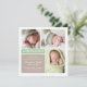 Annoncez votre toute nouvelle arrivée avec cette carte de naissance couleur bloc vert frais et taupe. Le design carré moderne met en valeur trois photos de nouveau-né aux côtés d'une bannière "Introducing" et d'une typographie de nom stylisée et sérif. Une palette de vert sauge doux et de taupe neutre convient à un bébé garçon ou fille, avec un dos vert uni. Tout le texte est entièrement personnalisable.