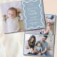 Cette carte personnalisée Dusty Blue Bow Wavy Boho Collage Baby Faire-part de naissance est moderne et minimaliste. La carte entièrement personnalisable comporte une photo verticale sur le devant avec le nom de votre bébé, les statistiques de naissance et le nom de vos parents. Le dos montre un collage de trois photos. Parfait pour partager votre joie, ce design minimaliste de coquette est idéal pour les annonces de bébé sans sexe. Célébrez votre nouveau-né avec cette carte faire-part simple et élégante.
