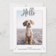 Pink Puppy Dog Adoption Faire-part Annoncez votre nouveau chiot, chien, chaton ou bébé de fourrure dans le style. Doté d'une bordure lunaire rose et d'illustrations de coeurs violets. Décoré en haut de la carte avec une belle police de script qui dit Bonjour. Personnalisez l'avant de la carte avec l'image, le nom et le nom de famille de votre nouvel animal. Au verso de la carte, vous pouvez écrire un message spécial ou modifier à un invité invitation à une fête pour votre nouvelle édition à la famille.