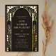 Une invitation d'anniversaire de mariage belle et formelle avec des éléments en feuille d'or. Parfaite pour une fête classique avec une touche moderne et art déco. Les détails en feuille d'or créent une floraison de fleurs et de feuillage dans un style vintage.