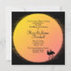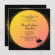 Simple paire de flamants roses devant le coucher du soleil pour vos invitations. TOUTE ANNÉE