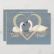 Faire-part d'annonce de date de mariage avec un couple de cygnes. Entièrement personnalisable.
