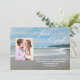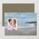Cette annonce de mariage en fuite est parfaite pour quiconque a fait une fugue en mer ou sur la plage. Le design présente une scène de plage avec une photo du couple heureux. Les mots "Juste enfuis" apparaissent dans le ciel et les détails de la fugue sont écrits dans le sable. Un excellent moyen de faire savoir à tout le monde que vous avez fait une fugue. Copyright henishouseofpaper