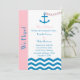 Vous vous êtes enfuis et vous voulez annoncer la bonne nouvelle à tout le monde. Ce faire-part d'annonce de mariage en fuite est la façon parfaite de faire savoir à tous votre mariage à destination qui a impliqué l'eau ou la mer, car il présente un thème nautique en rose et bleu. Entre une ancre avec une chaîne en forme de cœur qui est lâchée dans une mer en chevron zigzag, c'est l'endroit idéal pour tous les détails de votre fuite. Copyright henishouseofpaper