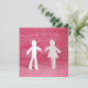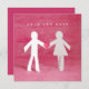 Faire-part de mariage personnalisable / invitation avec des personnages en papier découpé - joli garçon et fille se tenant par la main et cœur sur fond rose.