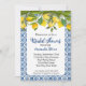 Faire-part de Baby Shower de mariage avec une bordure de carrelage bleu et blanc et un design de citron