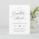 Célébrez la future grand-mère avec ce faire-part intemporel de Baby Shower pour grand-mère, mettant en vedette une calligraphie élégante en noir sur un fond blanc minimaliste. Parfait pour une réunion raffinée dans une salle de thé ou une célébration classique de bébé. Entièrement modifiable pour les détails personnalisés de votre événement.