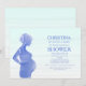 Une silhouette charmante, dans des nuances de bleu, sur un fond dégradé bleu clair crée cette invitation tendance pour une baby shower.