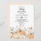 Accueillez votre petite citrouille avec cette invitation de baby shower automnale élégante et confortable. Avec des citrouilles à l'aquarelle tendance, des florales douces d'automne et une calligraphie sophistiquée, cette carte donne le ton pour une belle célébration saisonnière.