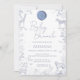 Célébrez l'arrivée imminente de votre petit bout avec cette élégante invitation de baby shower qui présente un mélange de dessins floraux délicats et de motifs d'animaux charmants, notamment un zèbre, un lion et une girafe, le tout dans des tons de bleu bébé doux. Parfaite pour une baby shower luxueuse et inspirée de la nature, cette invitation offre une façon unique et élégante d'inviter vos invités à partager votre joie.