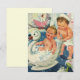 Illustration vintage d'enfants et de bébés avec deux frères jumeaux dans une baignoire remplie de bulles en forme de cygne. Les garçons jouent et s'amusent ! Un oiseau est perché sur le rebord de la fenêtre en train de chanter ou de gazouiller une chanson.