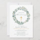 Faire-part de baptême à couronne florale d'eucalyptus | Modèle élégant de cérémonie religieuse de verdure. Invitez famille et amis à célébrer le jour sacré du baptême de votre enfant avec ce faire-part élégant à couronne florale d'eucalyptus. Présentant une délicate verdure à l'aquarelle et des accents floraux doux, ce modèle personnalisable est parfait pour les cérémonies de baptême chrétiennes, catholiques et protestantes. Personnalisez avec le nom de votre enfant, la date de l'événement, le lieu de l'église et les détails de RSVP. Idéal pour les bébés garçons, les bébés filles ou les célébrations neutres en matière de genre. Disponible en tant qu'invitation imprimée ou téléchargement numérique pour s'adapter à votre style de planification d'événement.