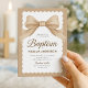 Célébrez l'événement sacré du baptême de votre enfant avec ce faire-part élégant orné d'un nœud beige et d'une croix. Les tons neutres et doux créent une atmosphère sereine pour votre occasion spéciale. Parfait pour ceux qui recherchent un design classique et sophistiqué pour commémorer cette étape importante.