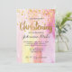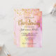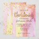 Tendance, ce faire-part présente un fond aquarelle rose et des lettres et confettis dorés qui tombent en arrière-plan.