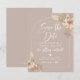 Faire-part de fiançailles de mariage aux belles couleurs neutres avec un design en arche et feuillage d'herbe de pampas.