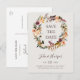 Cette invitation postale carte "save the date" de couleur bordeaux, orange, florale et beige est parfaite pour votre mariage champêtre bohème chic avec une palette de couleurs rosée, vert foncé et or. Le design présente une couronne ou un bouquet de fleurs minimalistes aquarelles aux tons pêche, rose poussiéreux, violet et rose clair, ainsi que du feuillage en cuivre, vert foncé, jaune et rouille. Les fleurs de ce design sont le pavot, la rose et la pivoine. Le design est idéal pour un mariage champêtre simple et élégant au printemps, en été ou en automne. Veuillez trouver d'autres papeteries de mariage assorties et coordonnées dans le reste de cette collection.