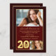 Une invitation de fin d'études avec deux photos présentant l'année 2018, en or, sur un fond bordeaux profond.