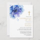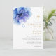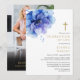Cette élégante invitation de célébration de vie chrétienne et de souvenir à fleurs bleues aquarellées peut être personnalisée avec vos informations en typographie moderne et photo au verso. Conçu par Thisisnotme©