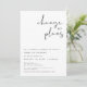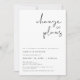 Cette invitation de changement de plans de mariage présente une police manuscrite audacieuse et un design minimaliste moderne. Modifiez *la plupart du texte*. Toutes les couleurs sont modifiables pour répondre à vos besoins. Ajoutez facilement votre propre photo au verso pour un touche personnelle unique.