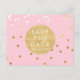 Carte postale Faire-part de conservation points de confettis brillants rose et or. Articles assortis disponibles.
