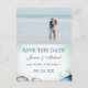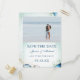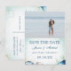 Faire-part de date de mariage moderne à l'aquarelle avec coquillages, étoiles de mer, algues. Fond à l'aquarelle bleu sarcelle. Combinaison de polices élégante. Parfait pour un mariage sur la plage ou un mariage de style nautique.