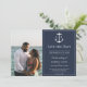 Cette Annonce de Date de Mariage à Photo Monogramme Marin arrive avec un design de texte simple, une ancre nautique simple pour les monogrammes des mariés dans une boîte moderne en attente de votre photo et de vos détails de mariage pour personnaliser. Des couleurs supplémentaires sont disponibles avec ce design. Parfait pour les couples qui ont un mariage côtier.