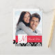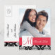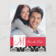 Élégant motif damassé vintage noir et blanc avec votre photo de fiançailles Faire-part de date de mariage avec accent de couleur rouge. Envoyez vos faire-part de mariage à vos invités de mariage avec cette jolie carte postale, en la personnalisant avec votre photo, votre monogramme initial, vos noms de la mariée et du marié, et votre date de mariage. Conception par Elke Clarke© Graphics et photo d'exemple sous licence d'utilisation.