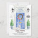 Annoncez votre nouvelle adresse avec notre faire-part élégante avec un canicule blanc, une porte d'entrée bleue, un tapis de bienvenue, un panneau en ardoise, des topiaires et une couronne fleurie posée sur un arrière - plan en brique grise.