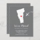 Faire-part mobile moderne avec l'état du Vermont avec un coeur rouge & avion sur un arrière - plan gris. La couleur arrière - plan peut être changée facilement en cliquant sur personnaliser, puis cliquez pour customiser plus loin pour voir notre sélecteur de couleurs. De là, vous pouvez aussi déplacer l'avion et le coeur! Contactez notre magasin si vous avez besoin d'aide ou si vous avez besoin d'un autre état.