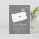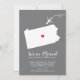 Faire-part moderne en mouvement avec l'état de Pennsylvanie avec un coeur rouge et avion sur un arrière - plan gris. La couleur arrière - plan peut être changée facilement en cliquant sur personnaliser, puis cliquez pour customiser plus loin pour voir notre sélecteur de couleurs. De là, vous pouvez aussi déplacer l'avion et le coeur! Contactez notre magasin si vous avez besoin d'aide ou si vous avez besoin d'un autre état.