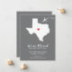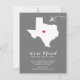 Faire-part moderne en mouvement avec l'état du Texas avec un coeur rouge et avion sur un arrière - plan gris. La couleur arrière - plan peut être changée facilement en cliquant sur personnaliser, puis cliquez pour customiser plus loin pour voir notre sélecteur de couleurs. De là, vous pouvez aussi déplacer l'avion et le coeur! Contactez notre magasin si vous avez besoin d'aide ou si vous avez besoin d'un autre état.