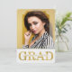 La photo de votre diplômé brillera dans cette faire-part moderne et simpliste, mais tendance, de graduation avec des accents faux feuille d'or et du texte pour entourer les vôtres.