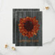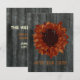 Faire part de mariage avec un fond de bois de grange à l'avant et à l'arrière. L'avant présente un tournesol qui semble avoir été peint sur du bois de grange. Personnalisez le texte à l'avant et à l'arrière. Recherchez des invitations assorties chez Jill's Paperie.