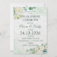 Étonnez vos invités avec ce Faire-part de fiançailles floral aquarelle vert et blanc présentant des arrangements floraux verts et blancs dans les coins. Ajoutez simplement les détails de votre événement sur ce modèle facile à utiliser pour le rendre unique. Voir la boutique pour des articles assortis