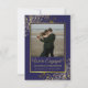 Ces magnifiques cartes d'annonce de fiançailles sont un excellent moyen de faire savoir à vos amis et à votre famille que vous allez vous marier. Le design élégant bleu marine et or présente votre photo dans un cadre en faux feuillet doré entouré de boucles et de volutes dorées ornées. Le titre indique "Nous sommes fiancés !" avec un espace pour vos noms et une courte note. Le dos est d'une couleur or marbré profond.