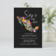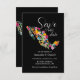 Une invitation colorée à réserver la date avec un design d'art floral de jardin mexicain.