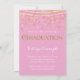 Annonces élégantes de graduation rose et or confetti. Cette belle cordes de lumières et confetti rose et or de graduation faire-part est facilement customisé avec votre photo. Vous pouvez choisir le style de police de votre choix et modifier la couleur de l'arrière - plan et de la police.