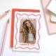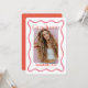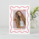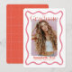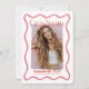 Cette faire-part tendance, rétro et moderne de graduation comprend votre photo entourée d'un cadre ondulé rose. L'envers comporte un arrière - plan rouge avec des motifs géométriques en rose. Personnalisez-le selon vos besoins. Vous pouvez trouver des produits correspondants dans mon magasin.