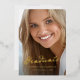 Ce chic et élégant faire-part de fin d'études 2025 présente deux photos de l'université ou du baccalauréat. Un script vintage en feuille d'or réel et lunatique apparaît sur une superposition à l'avant, avec deux photos du diplômé. Vous pouvez ajuster le libellé au verso de la carte en noir et blanc pour en faire soit une simple faire-part de graduation, soit une invitation de groupe. Un design de graduation simple et élégant pour la classe de 2025 !