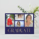 Simple Script Multi Photo Graduation Card présente quatre de vos photos préférées de votre diplôme d'études supérieures ou secondaires sur le devant avec l'élégant script de calligraphie or moderne "Graduate" superposition. Ajoutez une photo supplémentaire au verso. Simple, élégant et classe. Créé par ©Evco Studio www.zazzle.com/store/evcostudio
