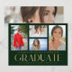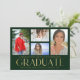 Simple Script Multi Photo Graduation Card présente quatre de vos photos préférées de votre diplôme d'études supérieures ou secondaires sur le devant avec l'élégant script de calligraphie or moderne "Graduate" superposition. Ajoutez une photo supplémentaire au verso. Simple, élégant et classe. Créé par ©Evco Studio www.zazzle.com/store/evcostudio