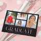 Simple Script Multi Photo Graduation Card présente quatre de vos photos préférées de votre diplômé de l'université ou du lycée sur le devant avec l'élégante couche de calligraphie rose moderne "Graduate". Ajoutez une photo supplémentaire au verso. Simple, élégant et classe. Créé par ©Evco Studio www.zazzle.com/store/evcostudio